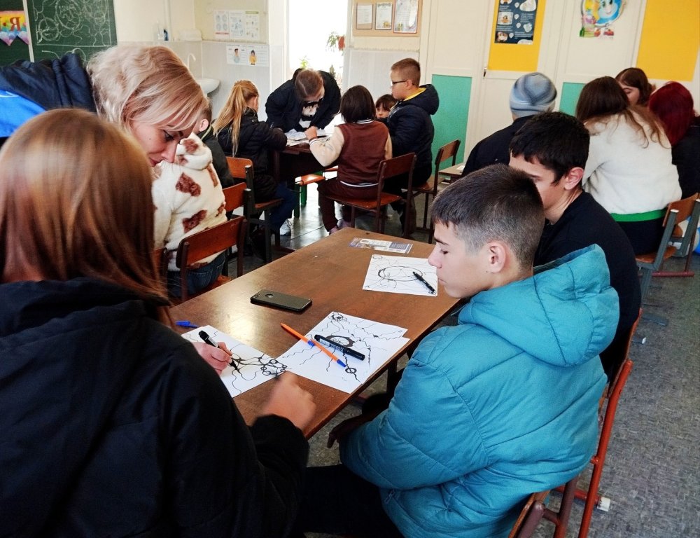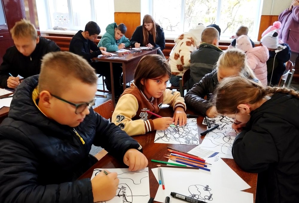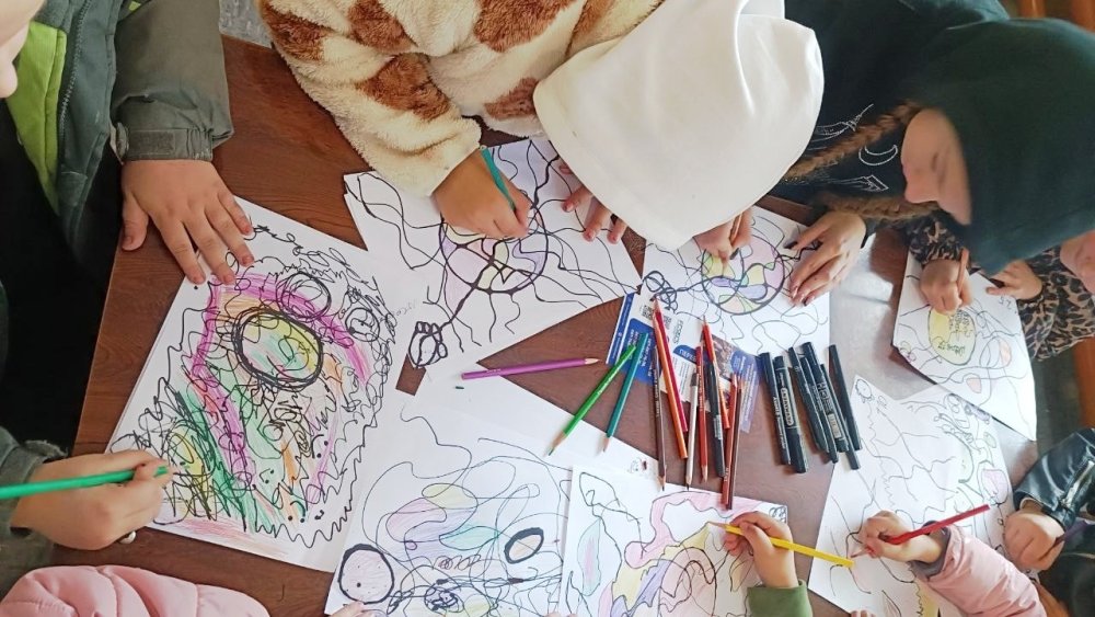 Психологиня познайомила дітей із базовими принципами цієї техніки — як через лінії, колір і форму можна виражати свої емоції, знімати напруження та розвивати креативність. Діти з великим захопленням працювали, занурюючись у світ творчості, і створили власні неповторні малюнки, наповнені барвами й позитивними емоціями.