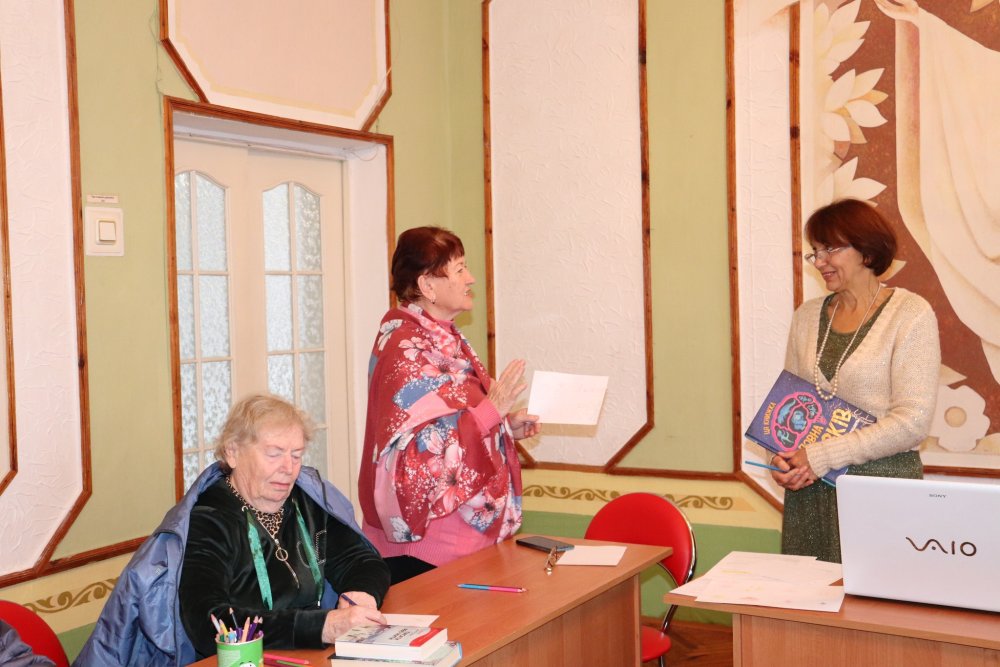 У п’ятницю, 14 листопада, в тему «Красномовлення» у Березанській публічній бібліотеці занурились учасниці розмовного клубу «Магія слова». Вони слухали незмінну ведучу Аллу Голокоз, дивились підготовлені відеозаписи, виконували дихальні вправи та артикуляційну зарядку. Алла Пилипівна ще й експромтом переклала свій давно написаний російською мовою вірш «Лист доньці» та тричі у різних техніках прочитала поезію Раїси Іванової «Пізня осінь».