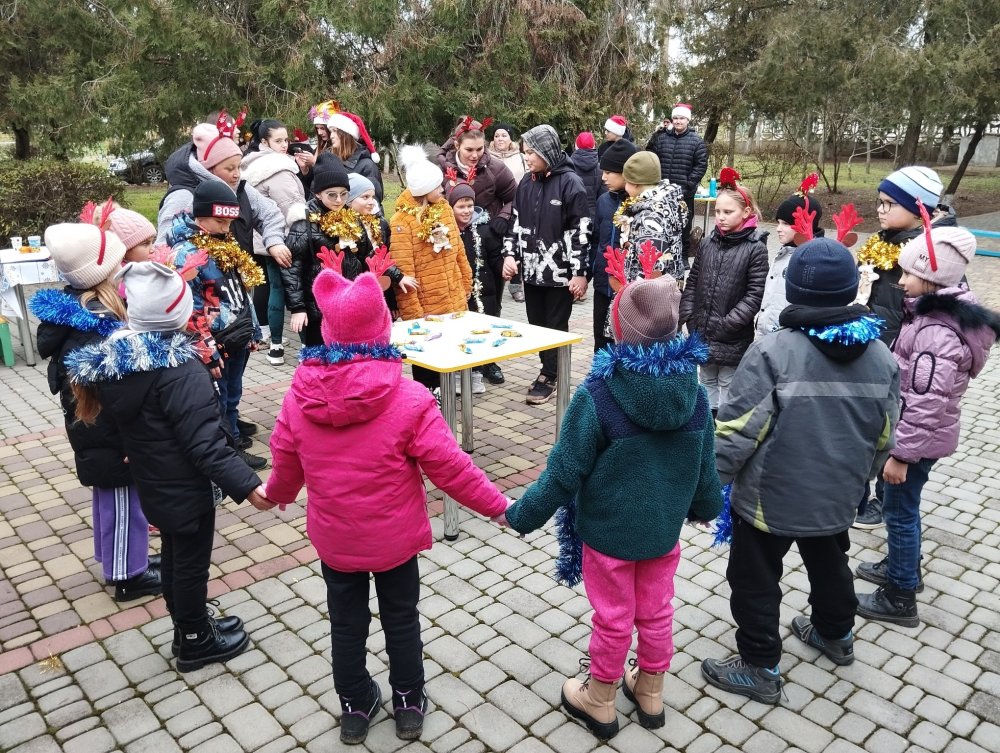 Подвір’я наповнилося щирими емоціями, ароматом мандаринів, радістю та веселощами. Запальна ритмічна музика, руханки, танці й пісні об’єднали дітей, учнів, учителів і батьків у справжньому святковому колі. Усмішки, сміх і живе спілкування створили особливу атмосферу єдності, яку не здатен зруйнувати жоден холод.