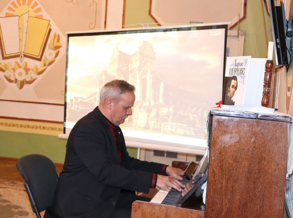 Захід під назвою «Слово Тараса» розпочався з музичного уривка, виконаного Мілєною Безнисько на піаніно. Далі ведуча Алла Голокоз повела присутніх стежиною життя відомого поета, прозаїка, художника й мислителя. В канву розповіді про дитинство, юність та зрілість Шевченка доречно впліталися підібрані відеоролики, які ілюстрували слова пані Алли. Цікавою була й розповідь Миколи Яворського про місце заслання поета, якому у 1848 році дозволили увійти до Аральської описової експедиції. Обов’язки Шевченка збігалися з його бажанням: як художник він багато малював не тільки з того, що було необхідним для експедиції, але й з власної ініціативи. Микола ж Степанович саме в тих краях — біля узбережжя Каспійського моря — свого часу ніс строкову службу, й намагався побувати в усіх місцях, які зобразив Тарас на своїх малюнках. До слова, на честь великого поета й художника Новопетровське укріплення було перейменоване на Форт-Шевченко. Цю назву місто в Казахстані носить й дотепер.